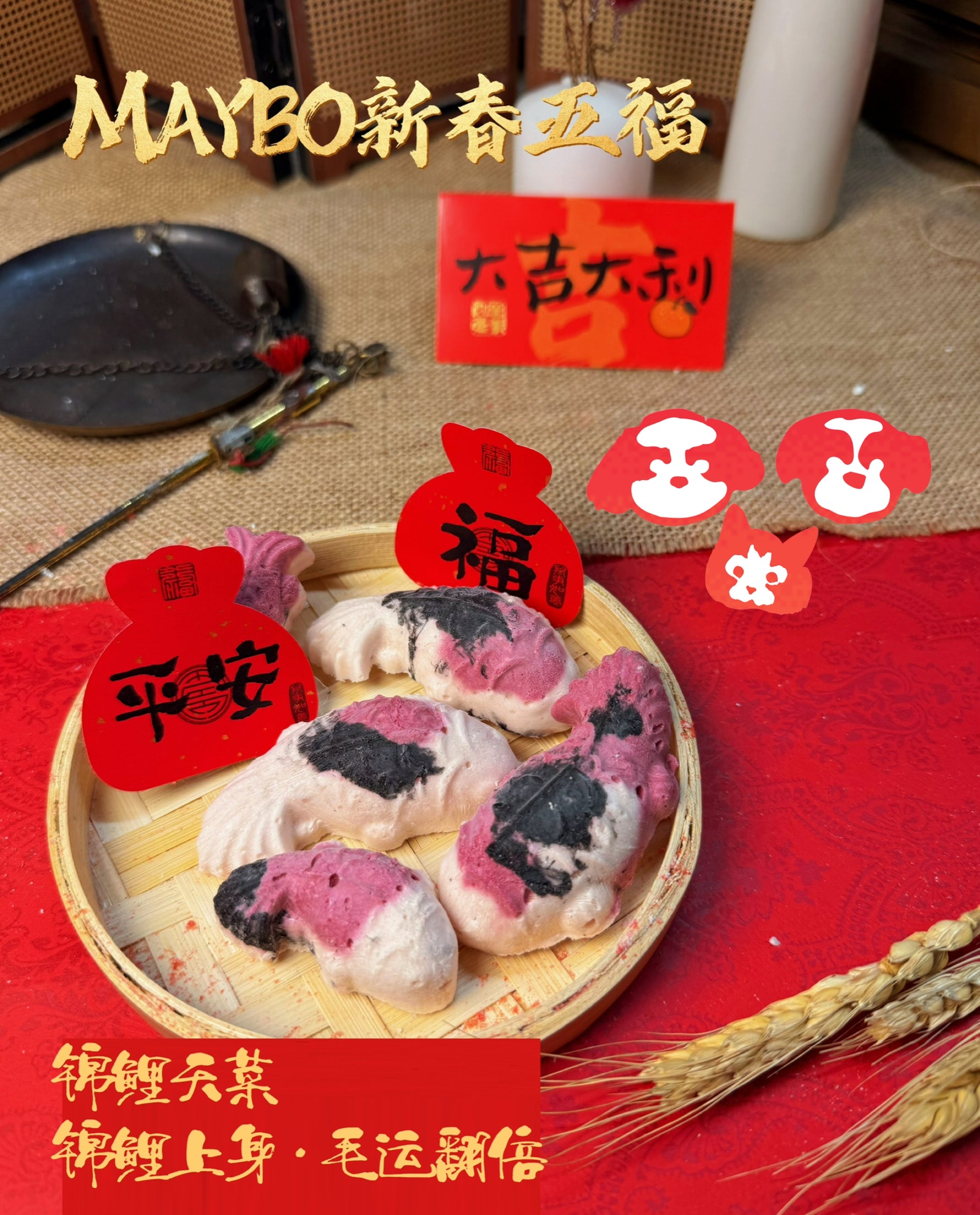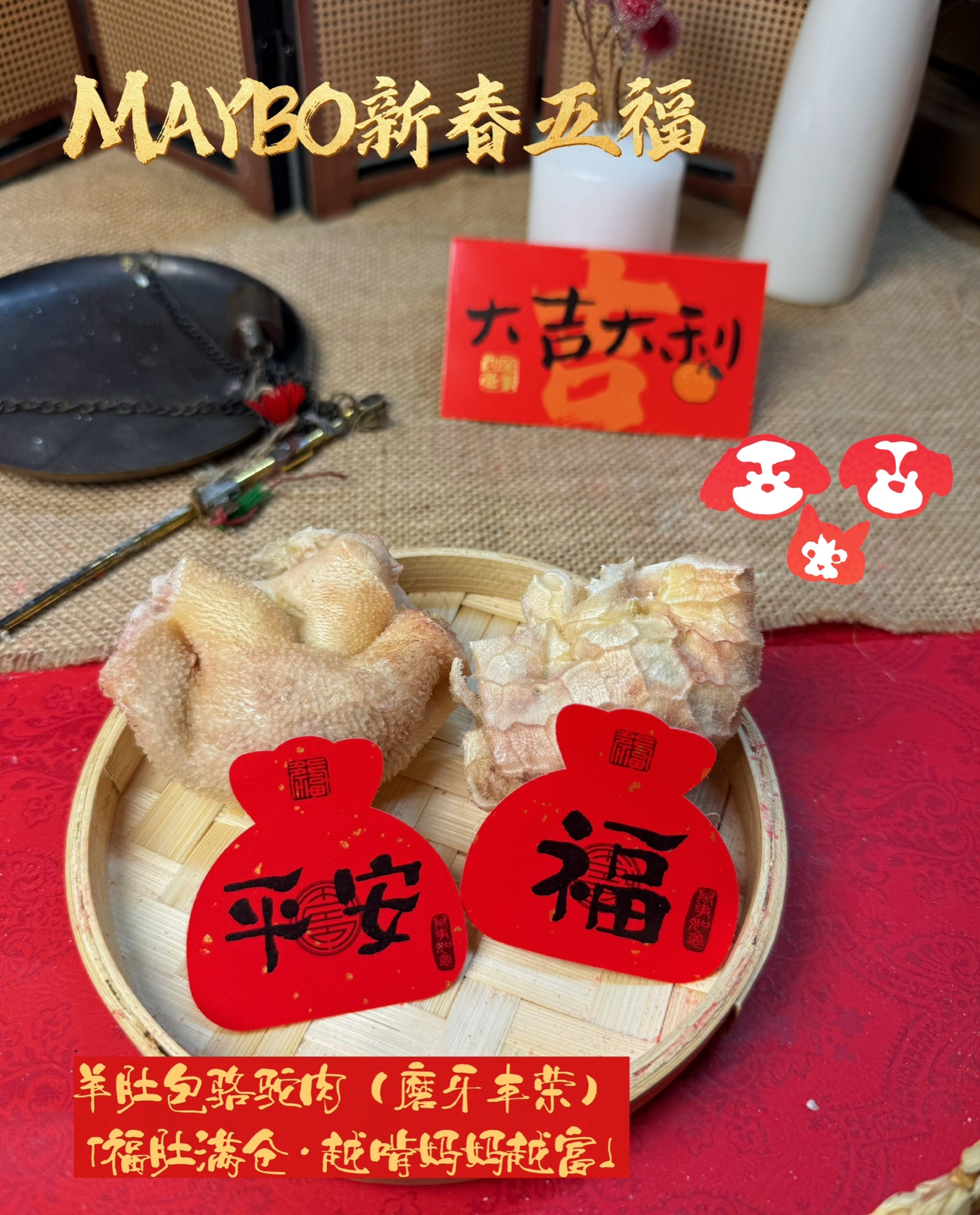 The MAYBO Chinese New Year Five Blessings Gift Box features five limited-edition freeze-dried dog treats, crafted from premium real meats with no artificial additives.