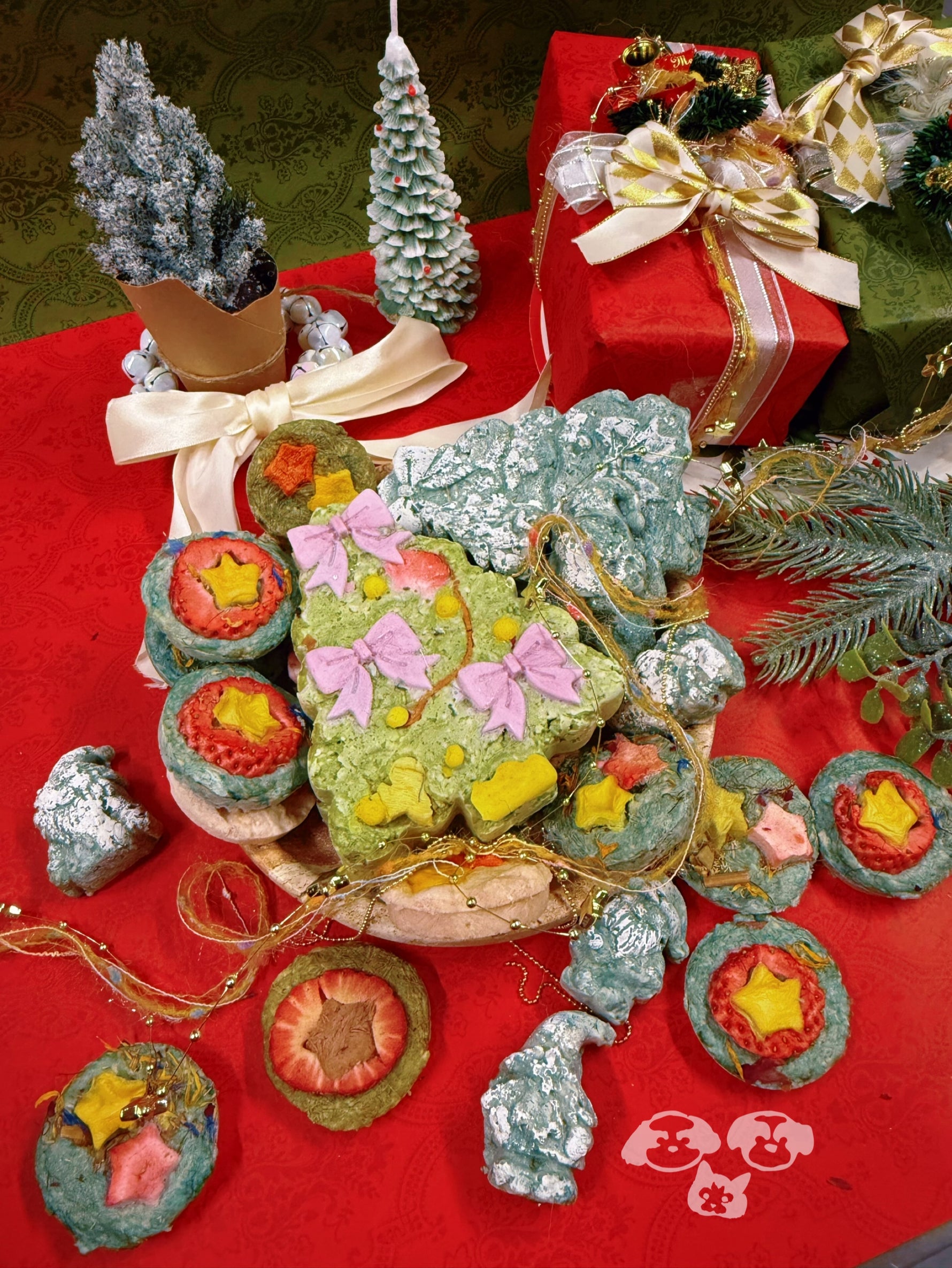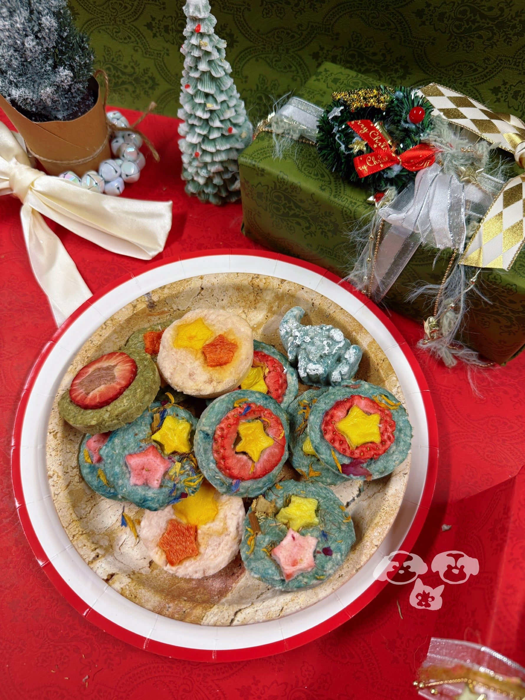 Each treat is decorated using natural, pet-safe, human grade ingredients for colour, function, and holiday charm: